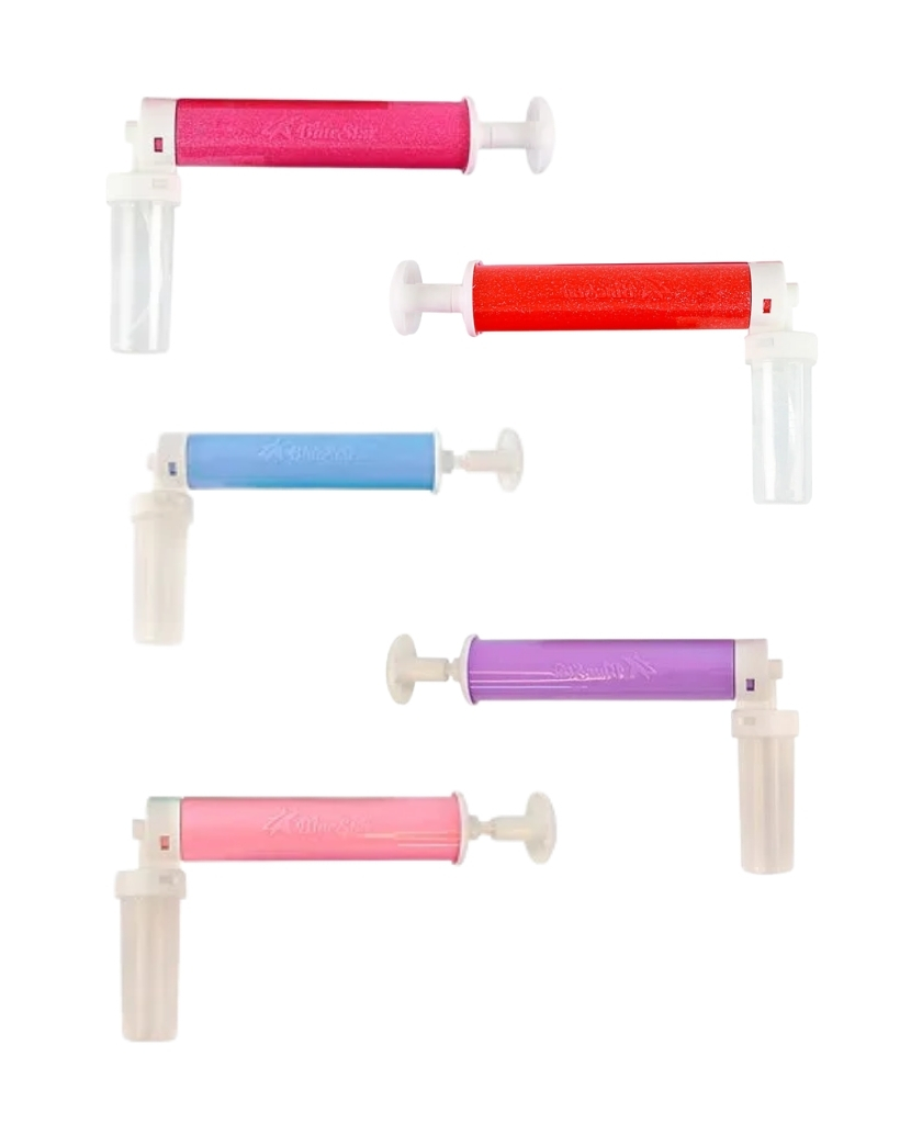 O Borrifador da Bluestar é feito de plástico, composto por duas partes: uma bomba de borrifar e um frasco. No frasco transparente, é onde você irá colocar o material que irá borrifar nos seus doces e bolos.