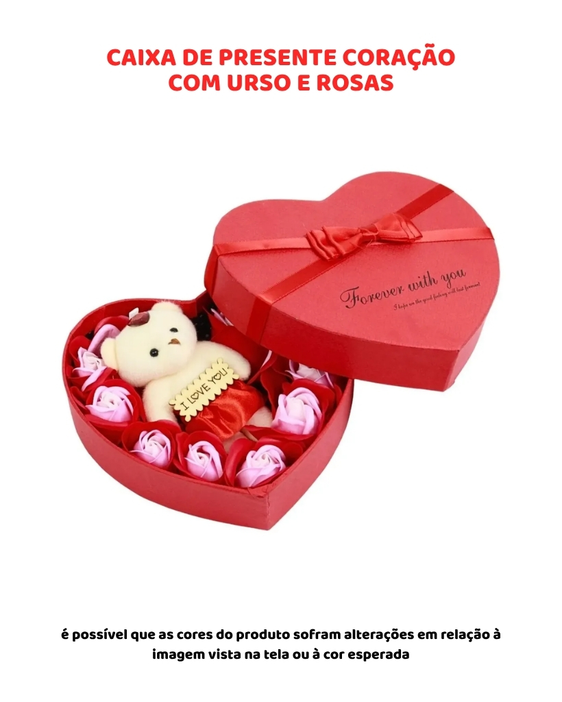 CAIXA DE PRESENTE CORAÇÃO COM URSO E ROSAS - FOREVER WITH YOU