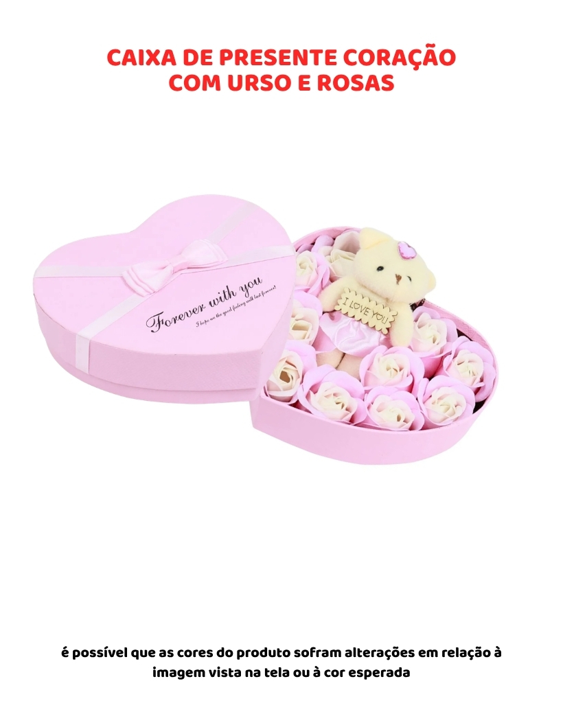 CAIXA DE PRESENTE CORAÇÃO COM URSO E ROSAS - FOREVER WITH YOU