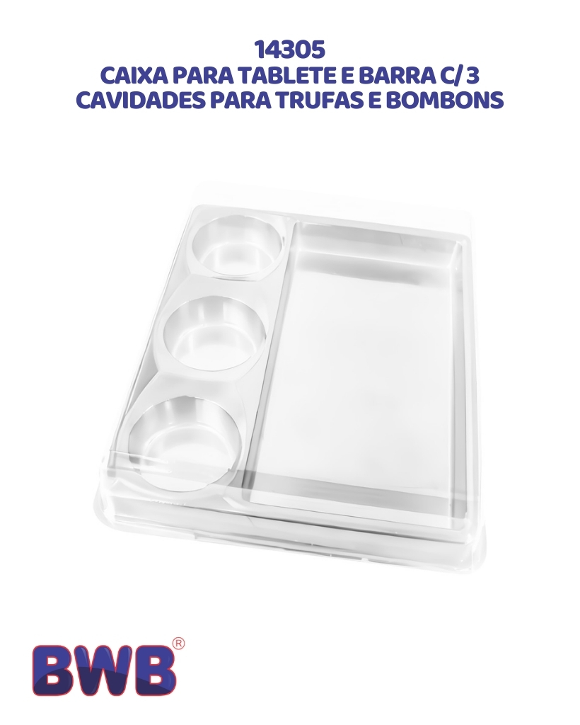 CAIXA PARA TABLETE E BARRA C/3 CAVIDADES PARA TRUFAS E BOMBONS DA BWB