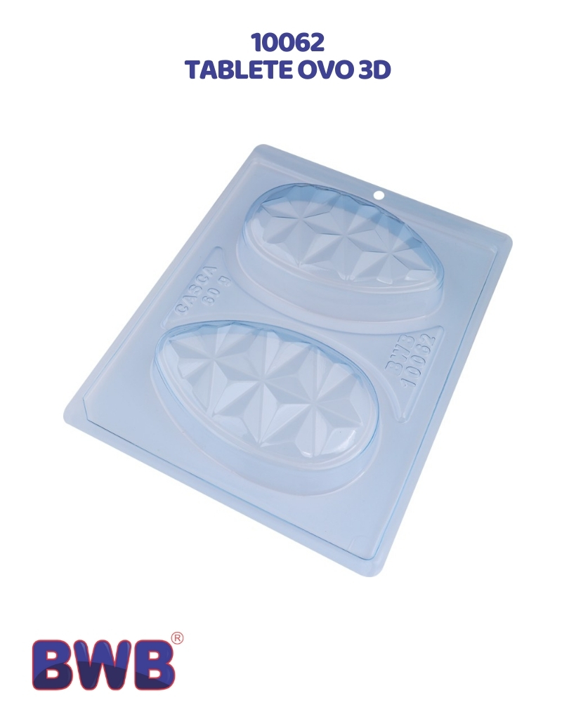 Surpreenda com o poder das formas geométricas! A Forma Tablete Ovo 3D da BWB traz um acabamento lapidado que cria um jogo de luz e sombra no chocolate, garantindo um visual moderno e sofisticado. Ideal para criar tabletes recheados que fogem do tradicional.