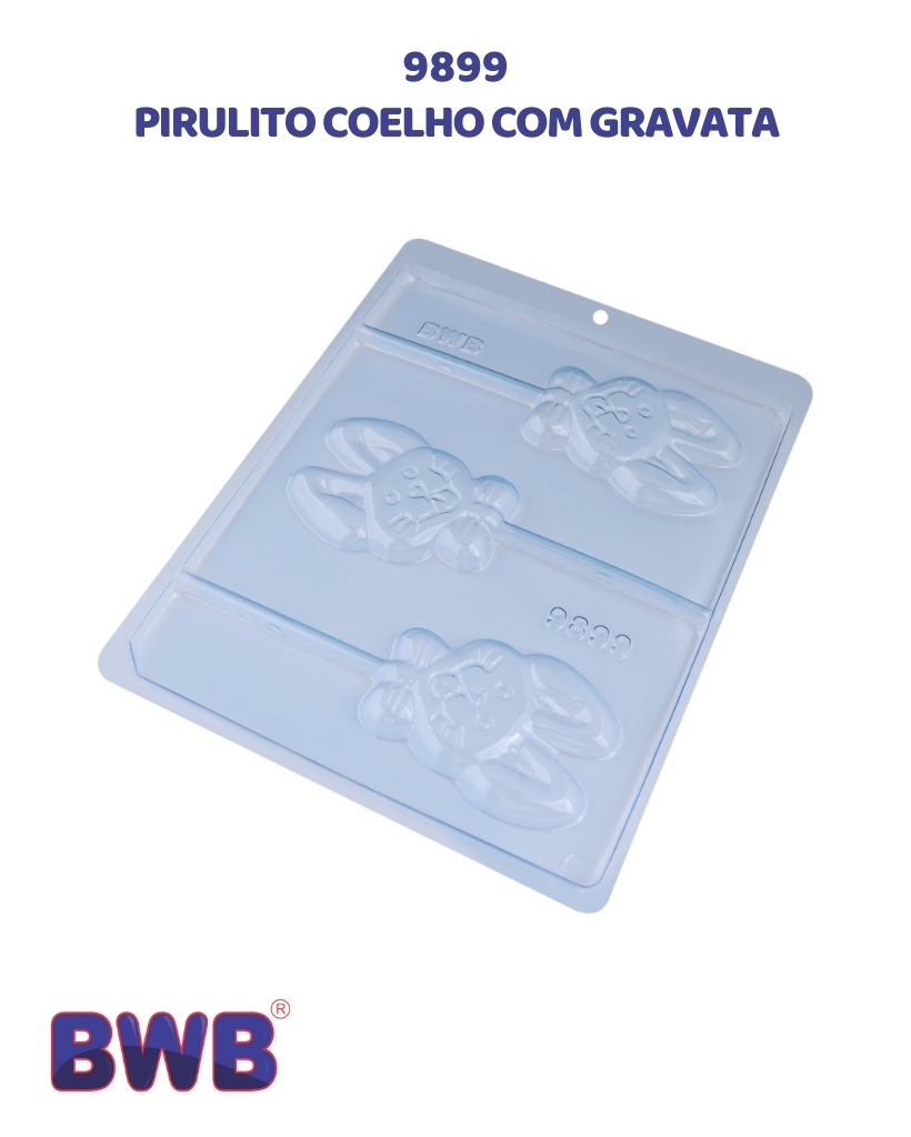 Deixe sua Páscoa muito mais divertida com o Pirulito Coelho com Gravata! Esta forma da BWB permite criar pirulitos de chocolate com detalhes expressivos que encantam crianças e adultos. É a escolha perfeita para montar kits de caça aos ovos, lembrancinhas escolares ou compor cestas decorativas.