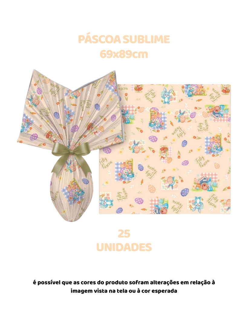 FOLHA POLI METALIZADA PÁSCOA SUBLIME CREME 69X89cm – PACOTE COM 25 UNIDADES | EMBALE