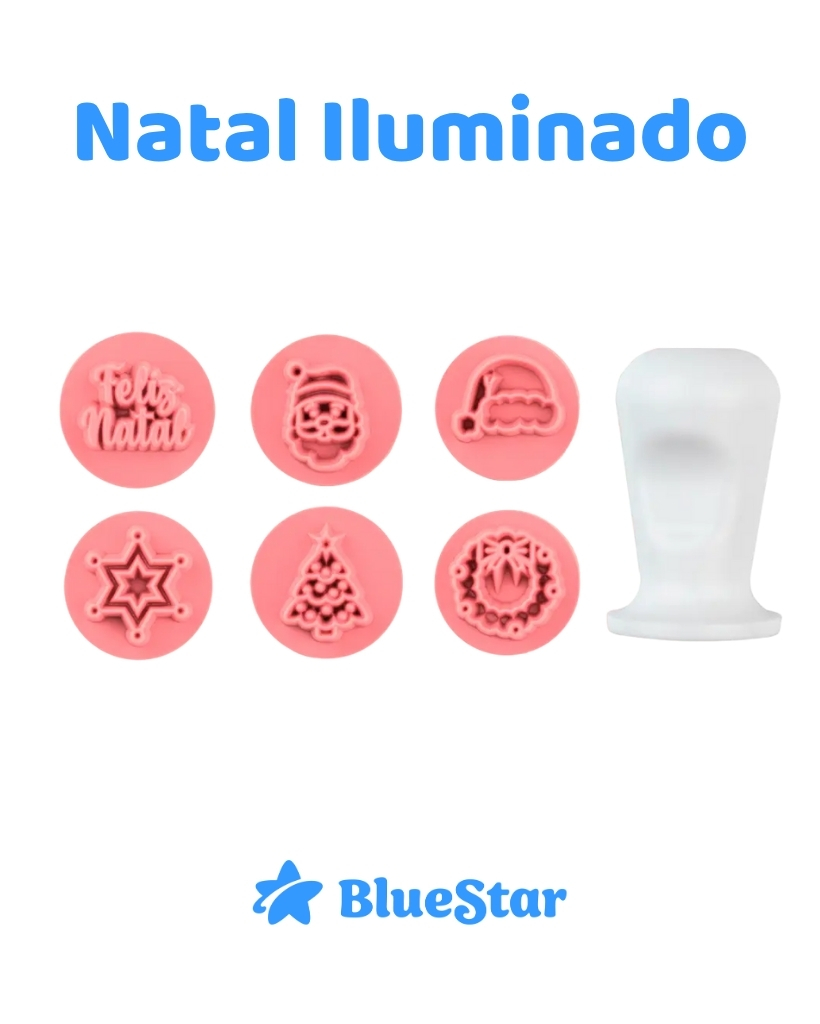 Quantidade do kit: 6 carimbos e 1 cabo para encaixar