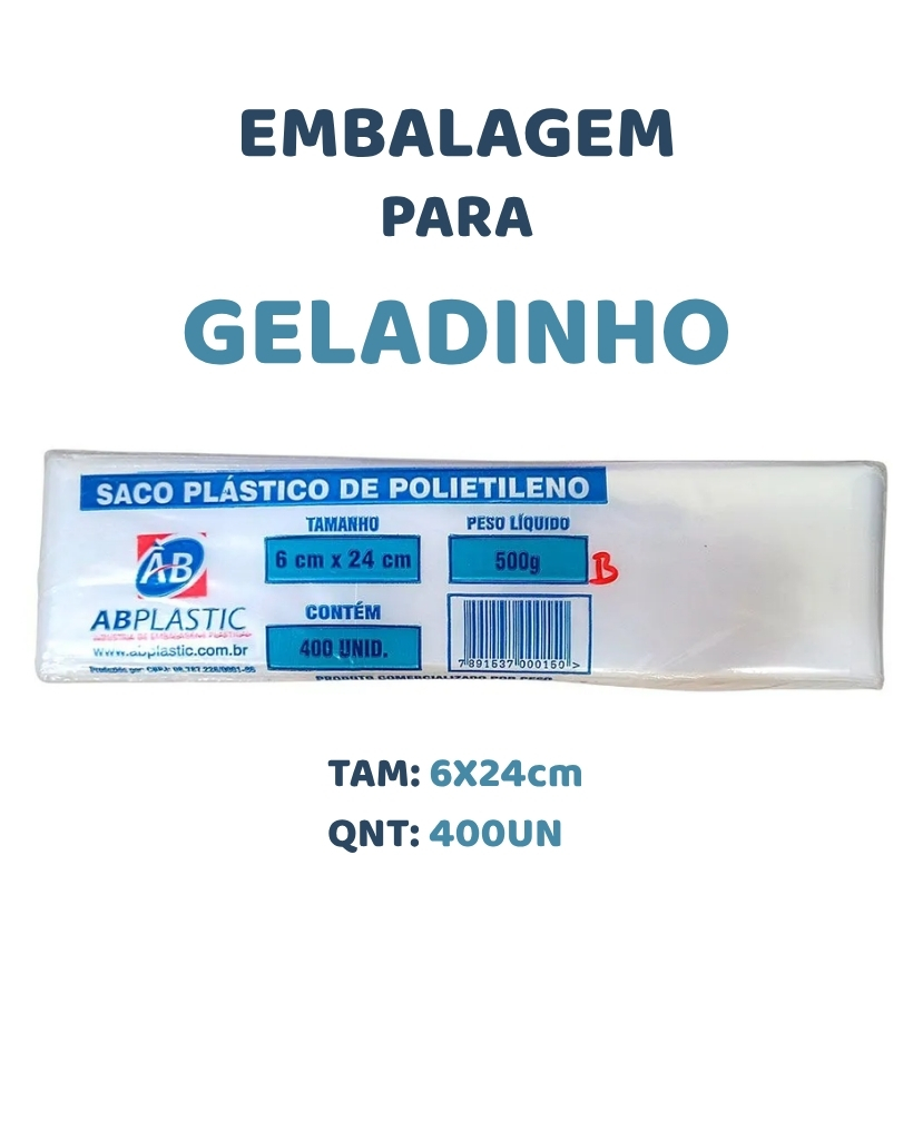 PACOTE C/400UN SACO PARA GELADINHO 6X24cm - ABPLASTIC