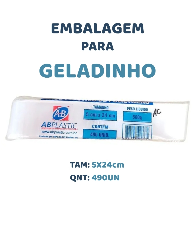 PACOTE C/490UN SACO PARA GELADINHO 5X24cm - ABPLASTIC