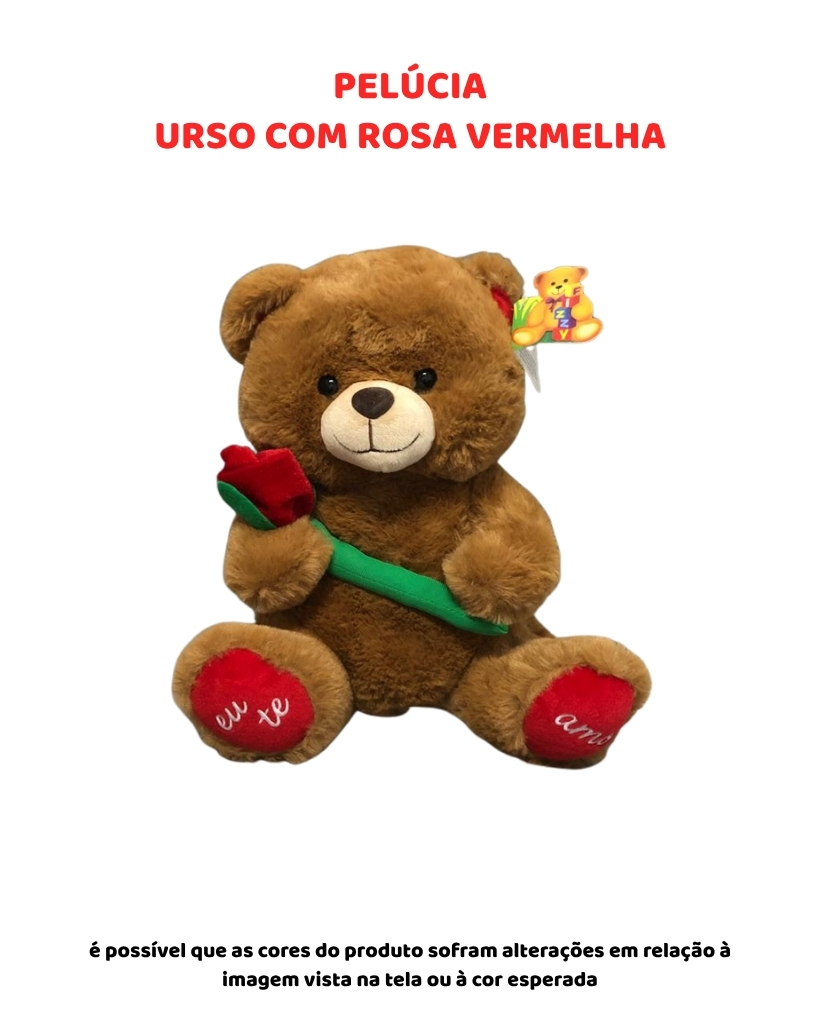 PELÚCIA de URSO segurando uma ROSA VERMELHA