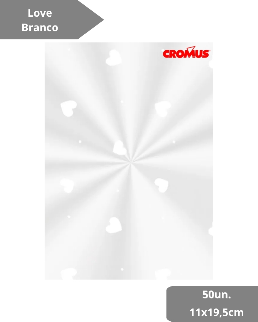 SACO TRANSPARENTE 11X19,5cm LOVE BRANCO C/50un - CROMUS